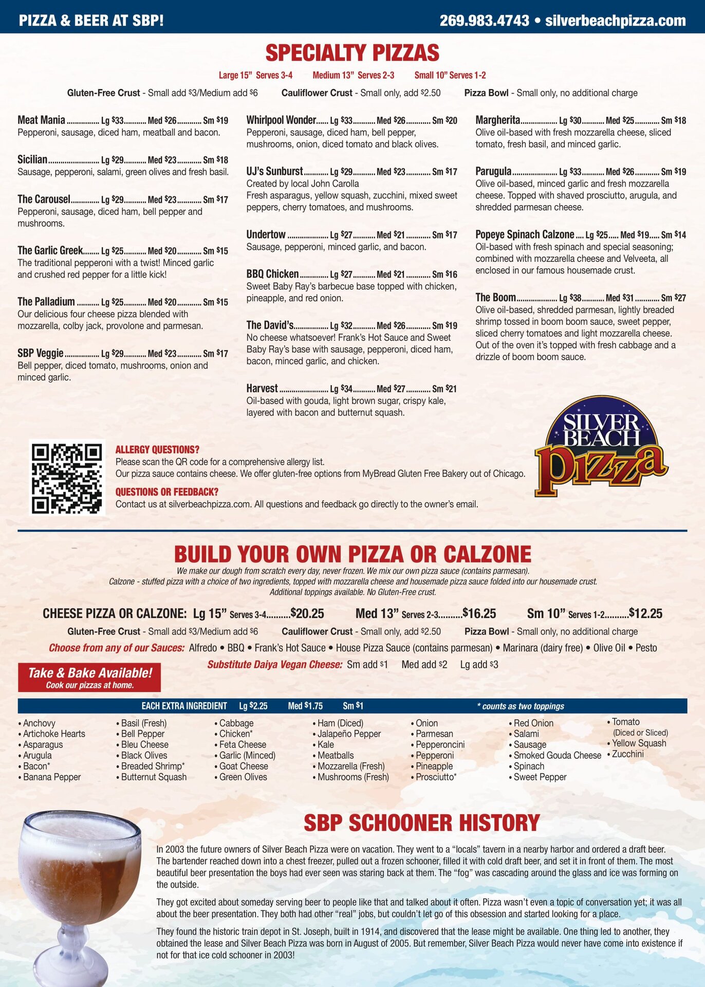 They got excited about someday serving beer to people like that and talked about it often. Pizza wasn’t even a topic of conversation yet; it was all about the beer presentation. Tony owned a place in Saint Joseph and has loved the location. When he saw that the historic Amtrak Depot became available, the idea of opening it as a pizza place took shape. They obtained the lease in August, 2005. That ice cold schooner found a home alongside a really great pizza at Silver Beach Pizza.